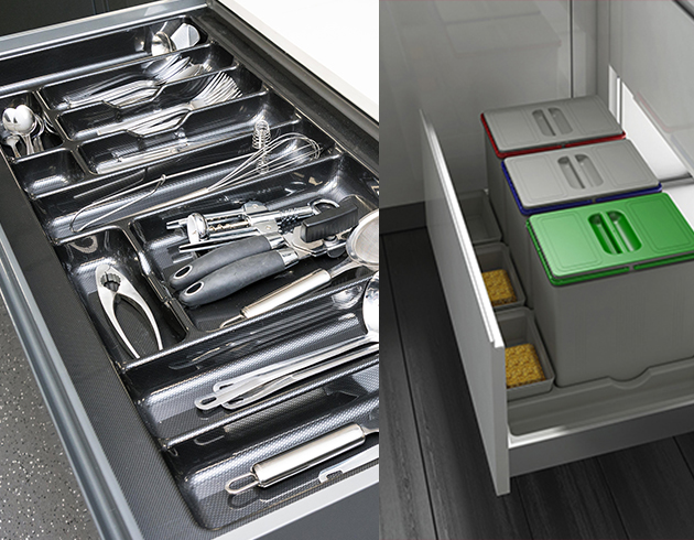 Maximise your kitchen floor space by integrating waste solutions into your kitchen furniture with our concise collection of bins and trays.